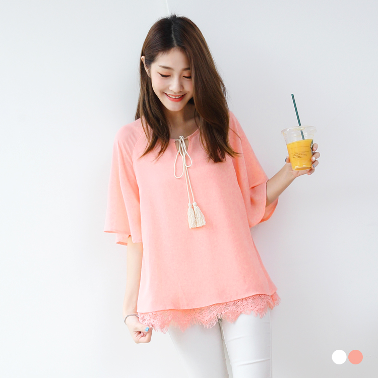 版型偏大 請依照個人喜愛的舒適度購買 假兩件式下襬拼接浪漫蕾絲材質的造型,增添了層次設計感! 傘袖的剪裁顯瘦的修飾了手臂線條,手感輕柔飄逸的雪紡上衣,營造浪漫優雅氛圍~ *************** 售價:369